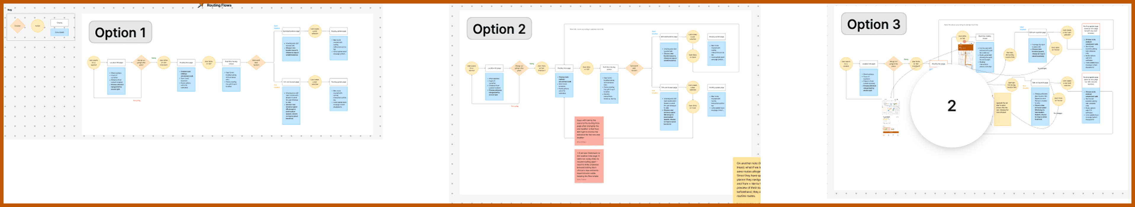 We brainstormed several flows for how routing might look in the app.